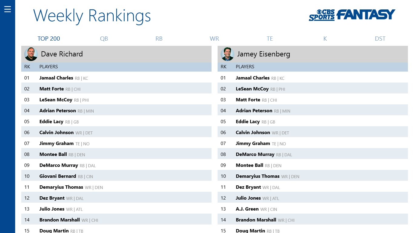 Cbs sports fantasy football app.